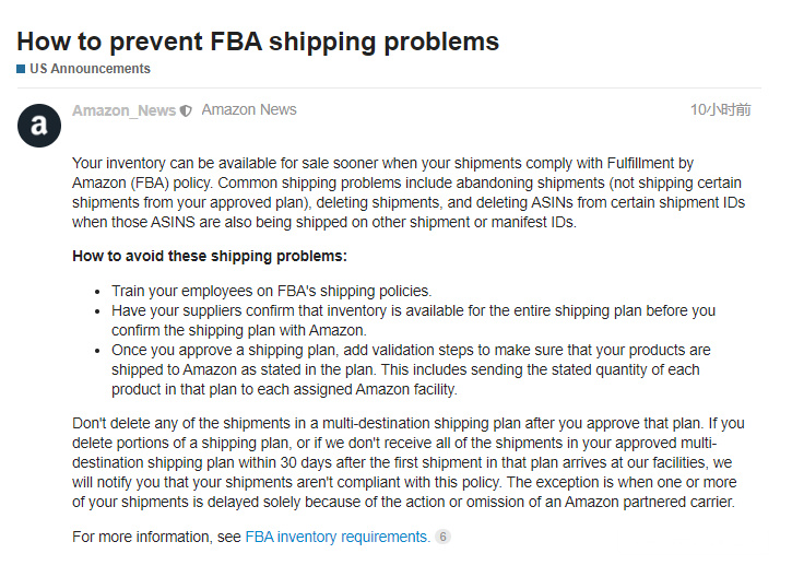 重要通知 亚马逊提醒卖家注意遵守fba运输政策 跨境头条 Amz123亚马逊导航 跨境电商出海门户